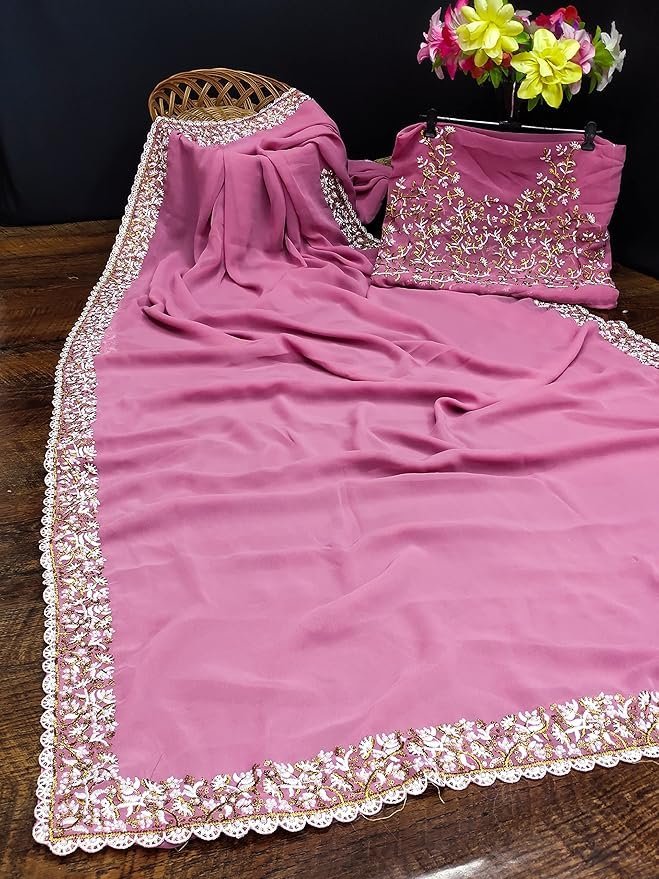 Women’s Georgette Embroidery work Saree with Blouse Piece
